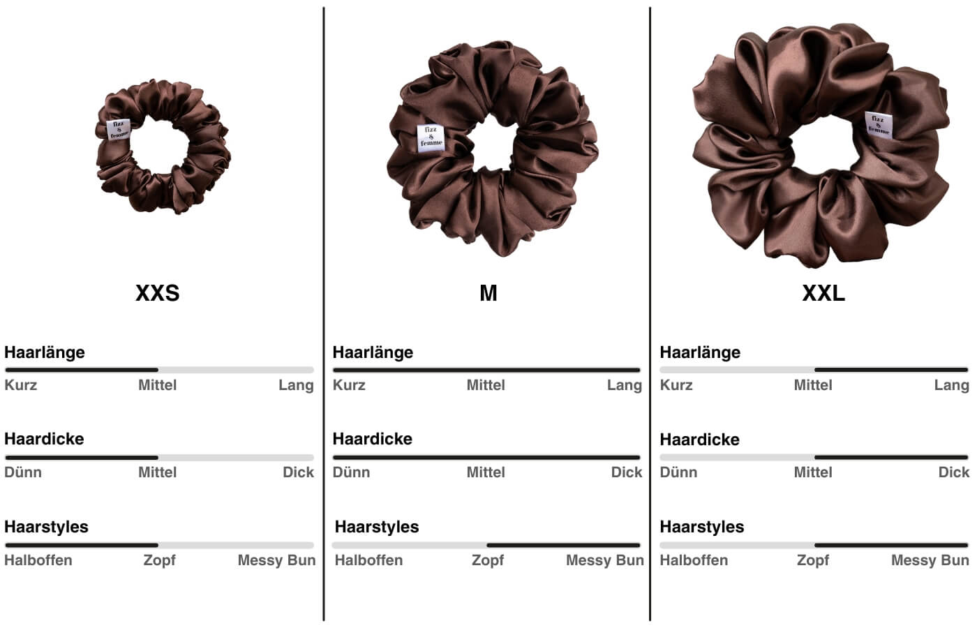 Du bist unsicher, welche Scrunchie-Größe am besten zu deinem Haartyp oder Styling passt? In unserem Größenguide zeigen wir dir die verschiedenen Größen und helfen dir, die ideale Wahl zu treffen – egal ob für einen lässigen Messy Bun, einen eleganten Zopf oder einhalboffene Frisur. Entdecke jetzt, welche Scrunchie perfekt zu dir passt!